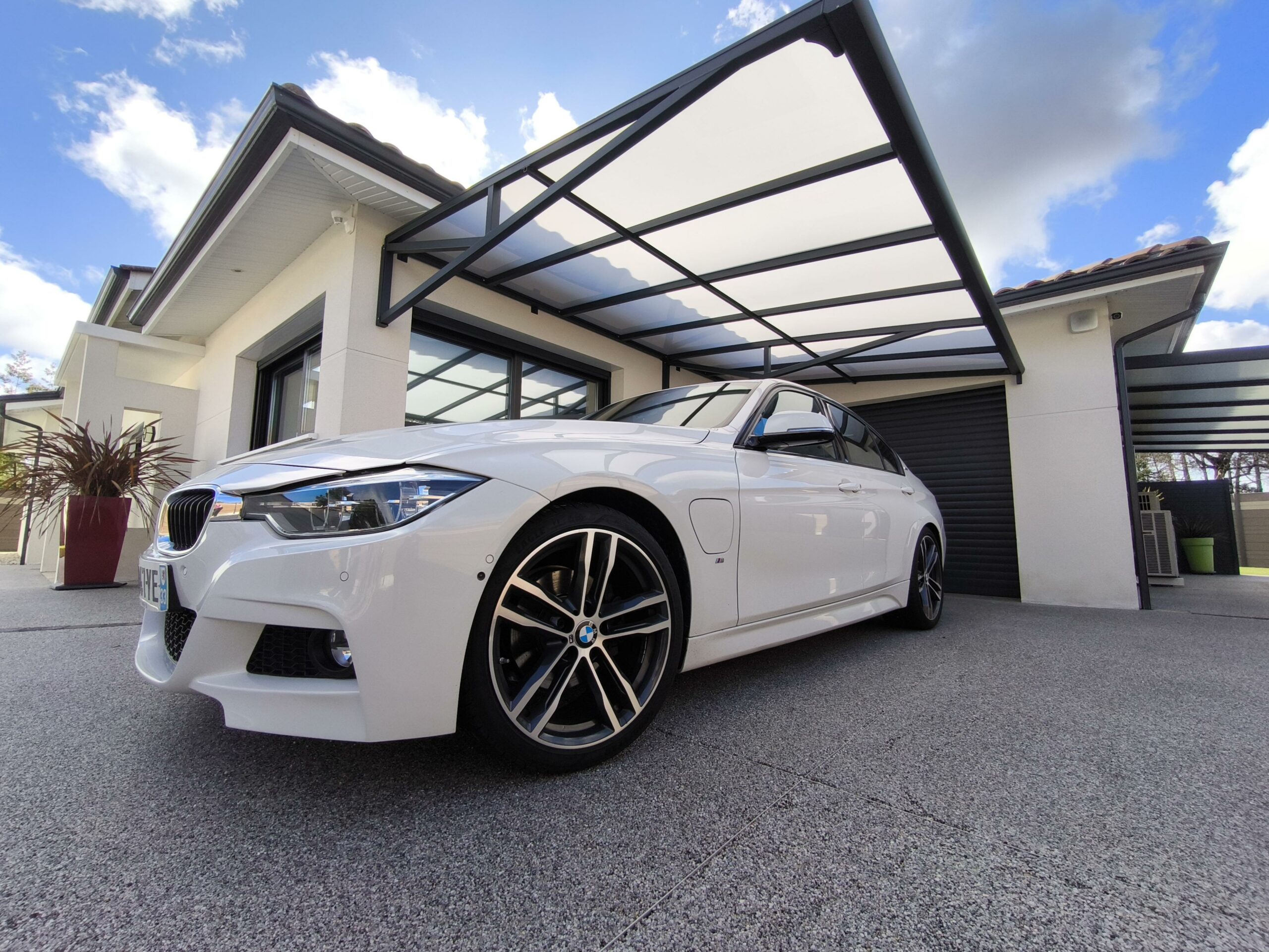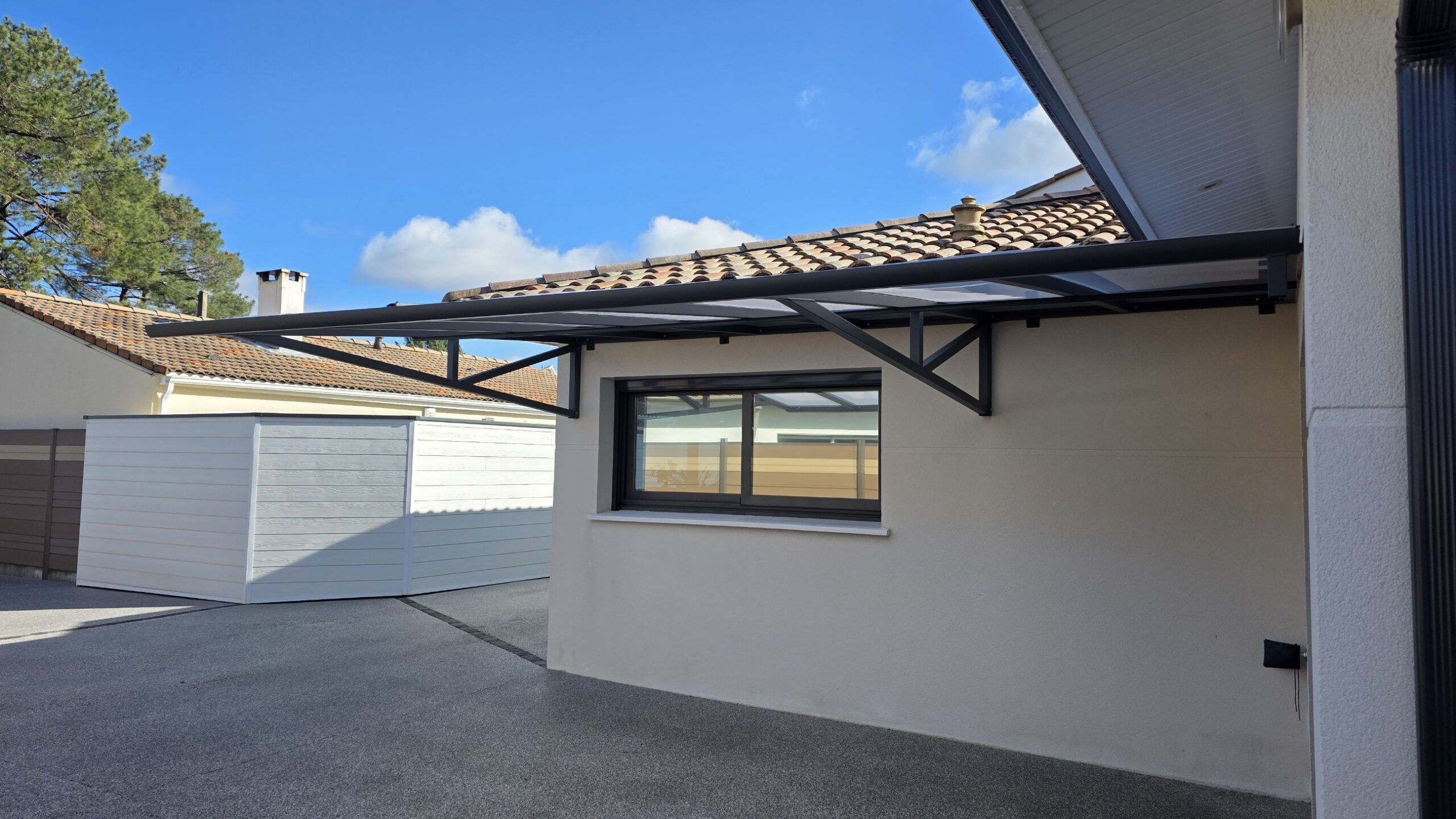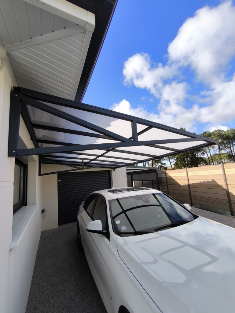 Abri robuste en aluminium, protège efficacement en s’intégrant avec élégance à l’architecture de la maison.