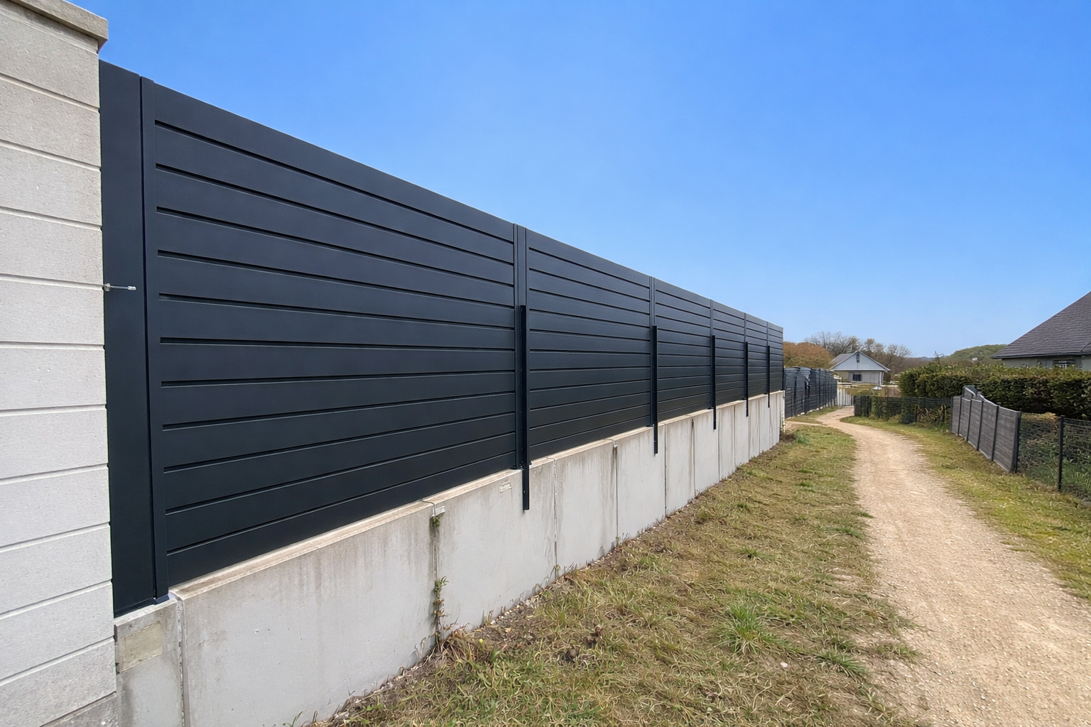 Entièrement fabriqué sur mesure dans nos ateliers, il s’adapte à chaque configuration : terrain en pente, muret existant, longueurs importantes ou contraintes urbaines. Son design à lames horizontales offre une occultation efficace tout en conservant une ligne contemporaine et épurée.