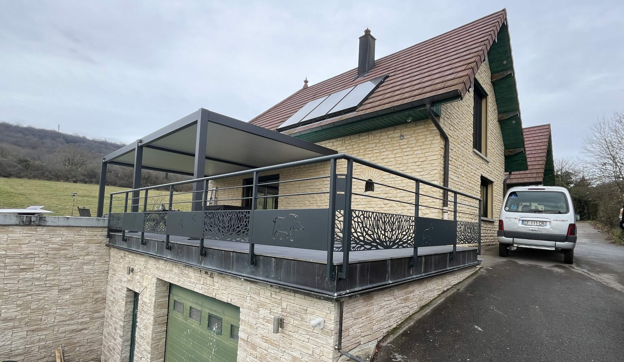 Carport avec habillage en lame brise-vue afin de protéger les véhicules des intempéries