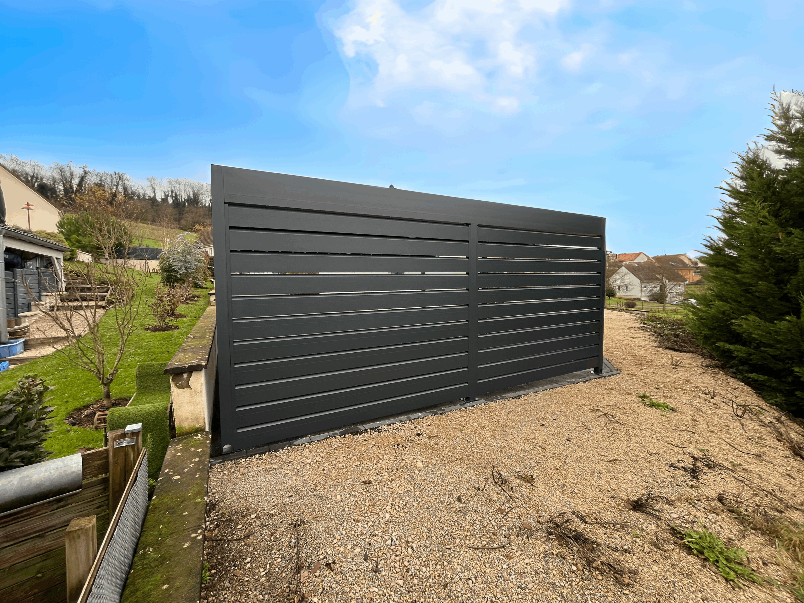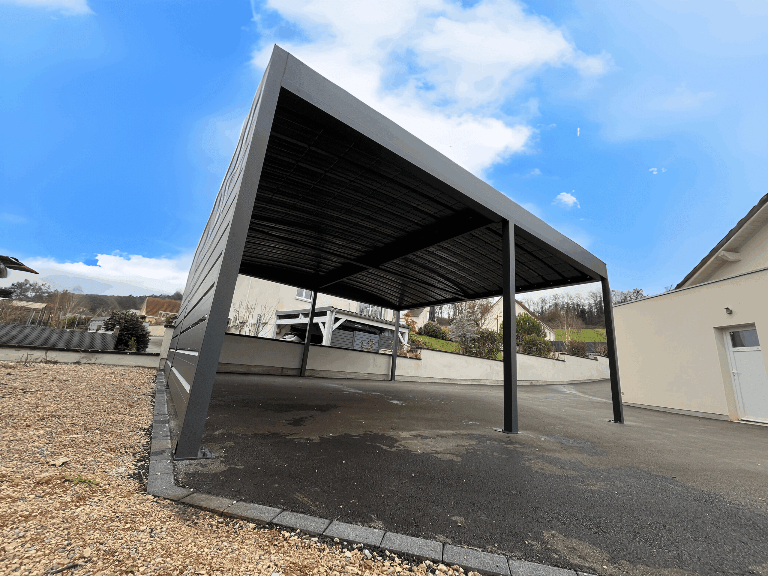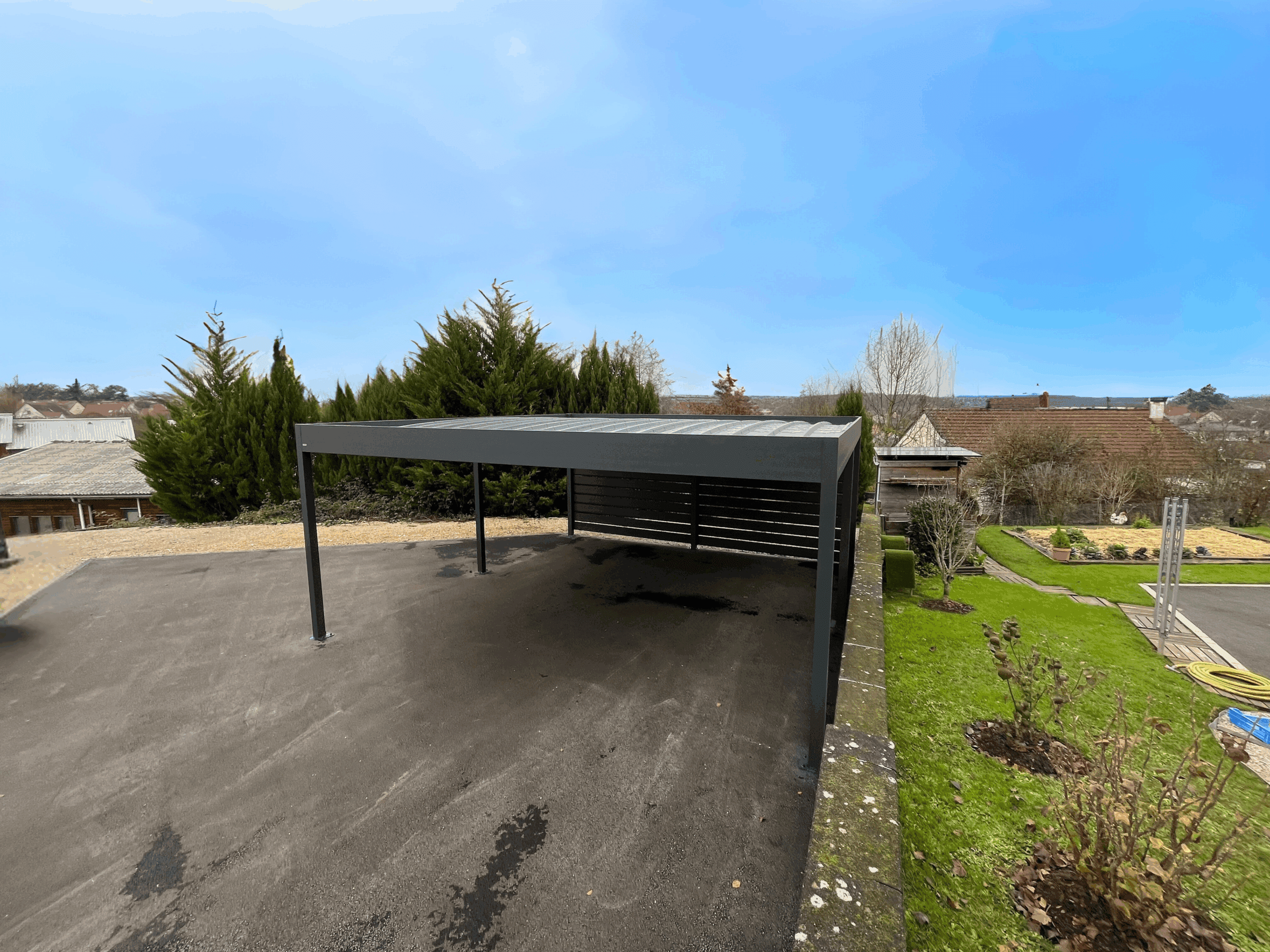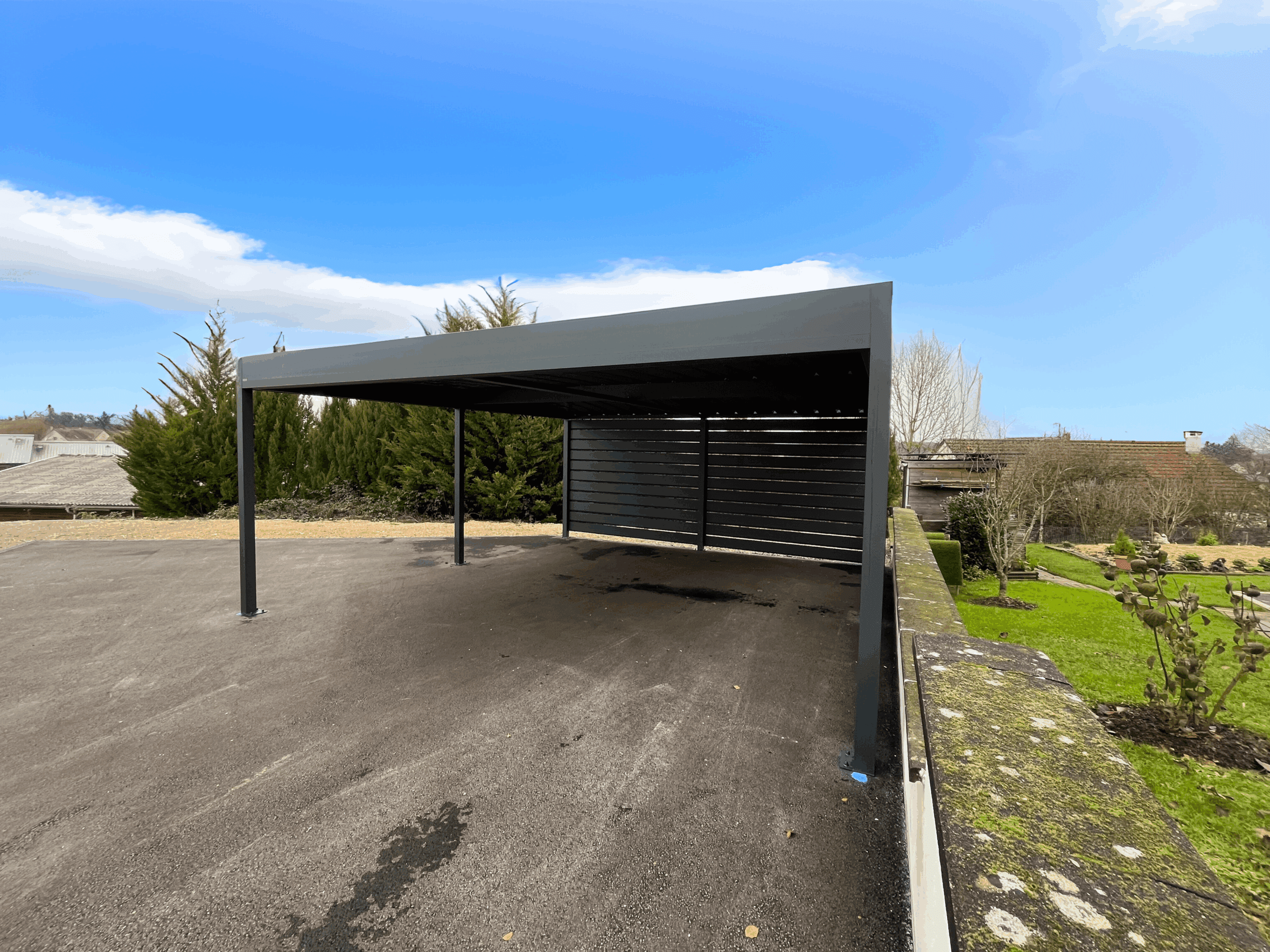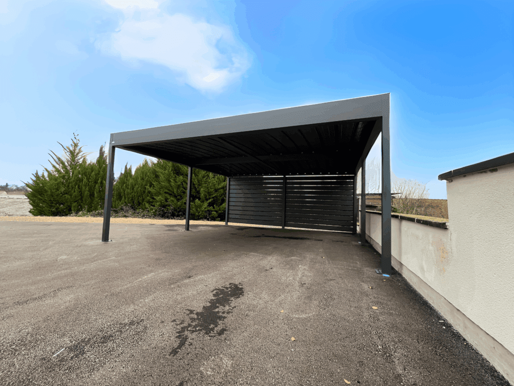 Création d’un abri adapté et personnalisé pour assurer la protection de deux véhicules.
