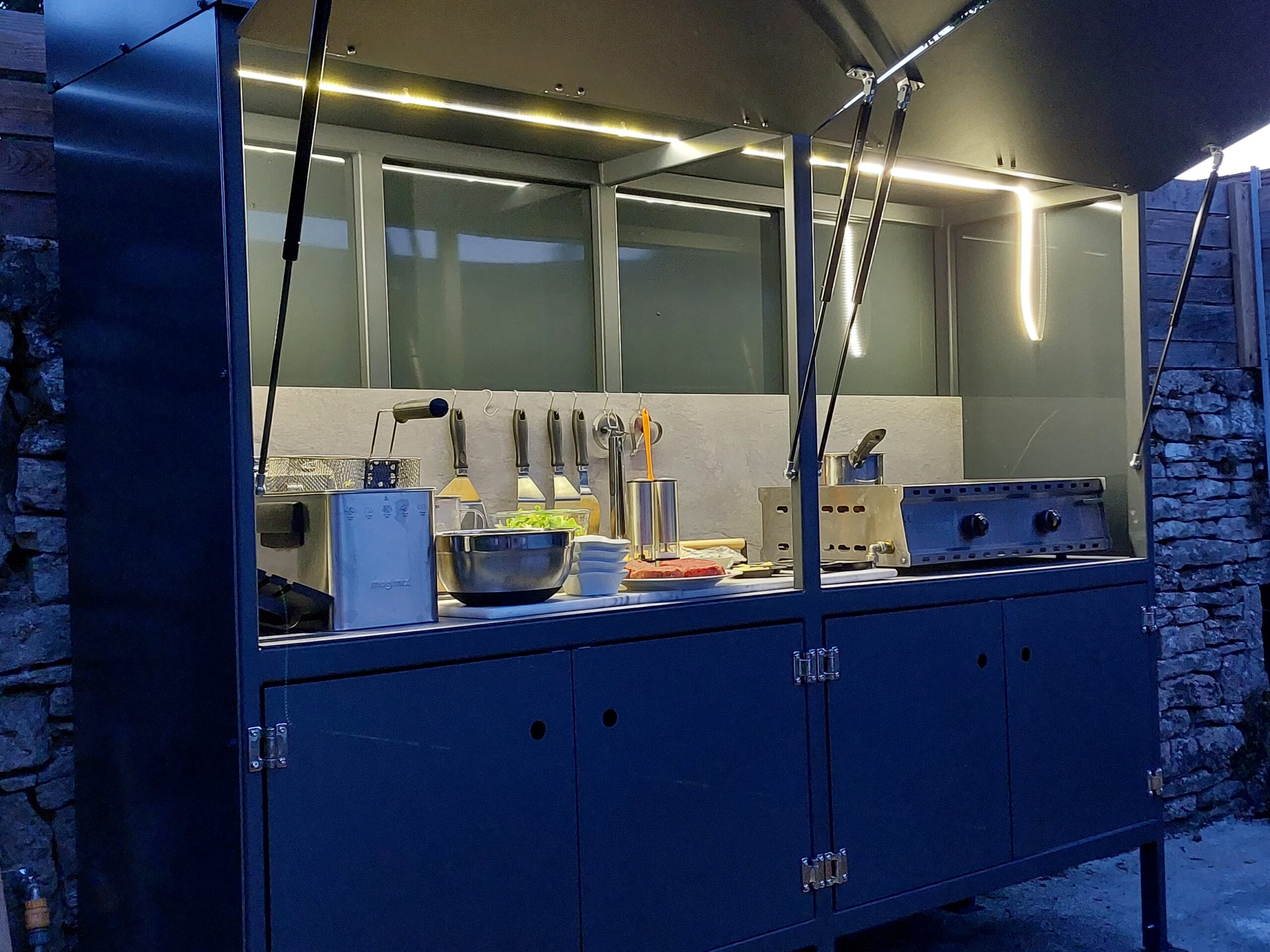 Réalisation d’un meuble sur mesure afin d’accueillir tous les équipements nécessaires pour passer de beaux moments de convivialité